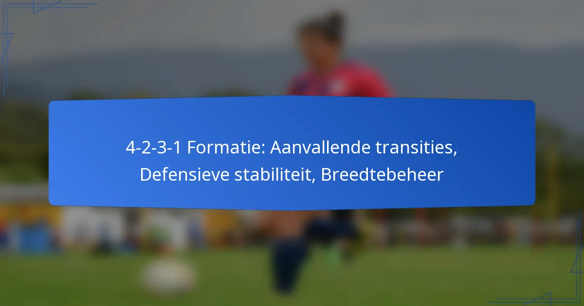 Wat is de 4-2-3-1 formatie en wat zijn de belangrijkste kenmerken?